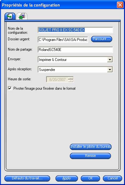 L'onglet Flux de travail affiche des informations sur le périphérique de sortie.
