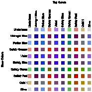 Cette série de nuanciers affiche toutes les couleurs Duotone pouvant être créées en utilisant les couleurs d'accompagnement des nuanciers ouverts. |
