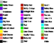 Cette série de nuanciers liste toutes les couleurs présentes dans la palette actuelle. |