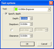 Définit des valeurs de réduction additionnelles pour le Premier ou Dernier passage, ou les deux.Vous pouvez préciser la profondeur de gravure de l'outil à chaque passage. |