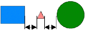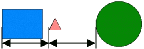 La distance est mesurée depuis le côté droit (supérieur) d'un objet jusqu'au côté gauche (inférieur) de l'objet suivant. |